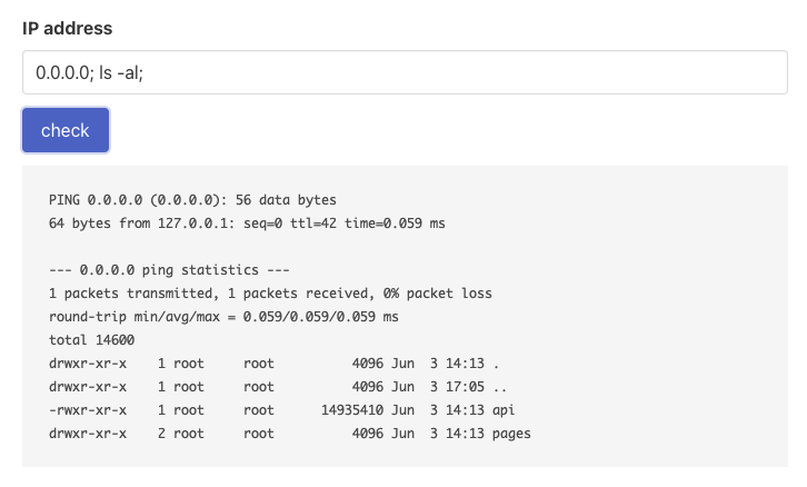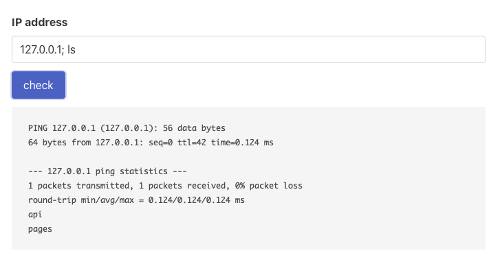 전형적인 커맨드라인 인젝션 문제이고, 거의 교과서 예제 문제 처럼 ping으로 나왔습니다.