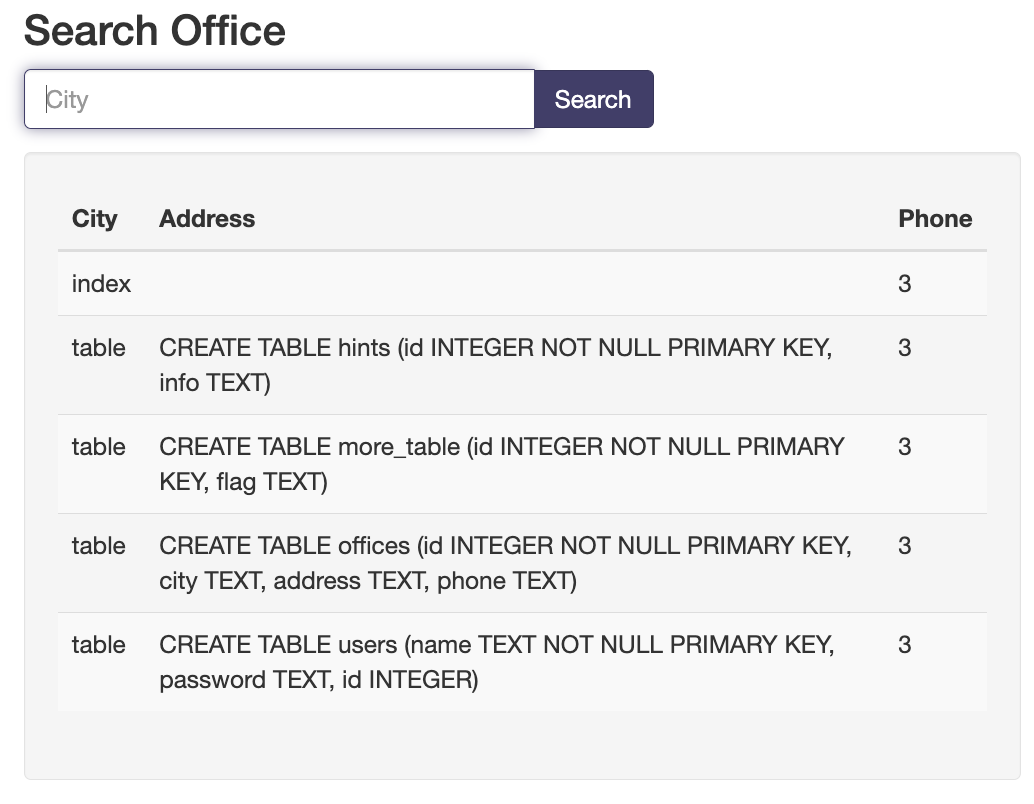 sqlite_master에서 실행된 sql 목록을 조회하고, 어떤 테이블이 있는지 확인합니다. more_table에 flag라는 칼럼이 있으니 확인해봅니다.