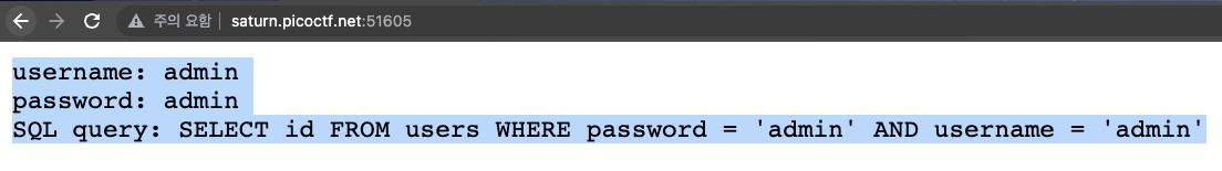 sql 수행결과를 보여주는데, ' or 1 = 1 -- 을 admin,password에 넣어서 조건을 항상 참으로 만듭니다.