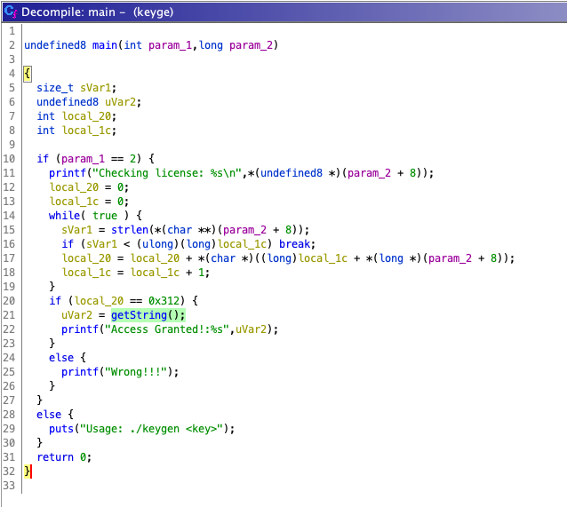 main 함수에서 인증 성공하면 getString 함수를 호출합니다.