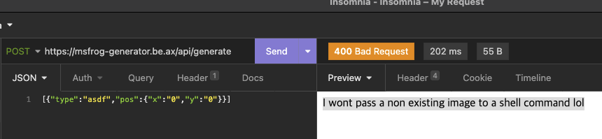 type에 이상한 문자열을 넣으면, shell commadn에 존재하지 않는 이미지를 넘길 수 없다고 나옵니다.