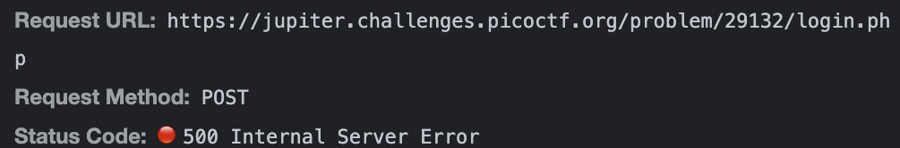 로그인 페이지가 있는데 SQL injection을 시도하면 500에러 발생하고 검은 화면이 나타납니다.